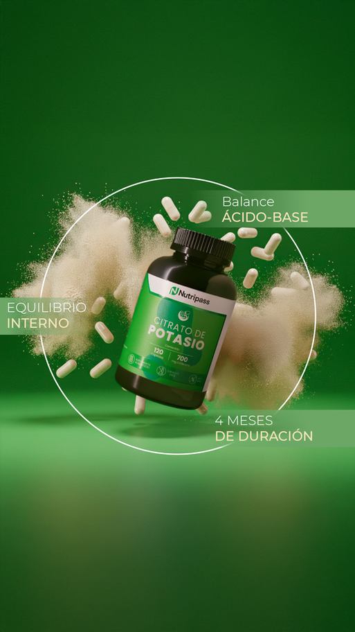 Citrato de Potasio contiene 120 cápsulas de 700 mg, diseñado para apoyar el equilibrio electrolítico y la función muscular. Este suplemento ayuda a mantener una hidratación adecuada, favorece el correcto funcionamiento del sistema nervioso y contribuye al rendimiento físico y al bienestar general.